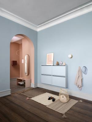 Der Schuhschrank ist mit einer Kipplade ausgestattet, was eine flexible Platzierung der Schuhe erleichtert.