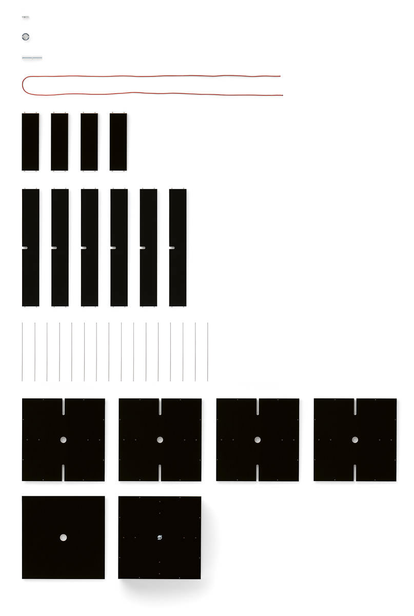 Der Buchstabler ist ein außergewöhnliches Möbel. Pro Etage gibt er 25 Taschenbüchern einen Unterschlupf. Je nach Bedarf lässt sich das Regal in die Höhe erweitern: von mindestens zwei, bis maximal sieben Etagen. Für einen stabilen Zusammenhalt der einzelnen Unterteilungen sorgt ein Synthetikfaser-Spannseil, das zwischen Deckplatte und Sockel verläuft. Dieses innovative Design ist 2004 entstanden.