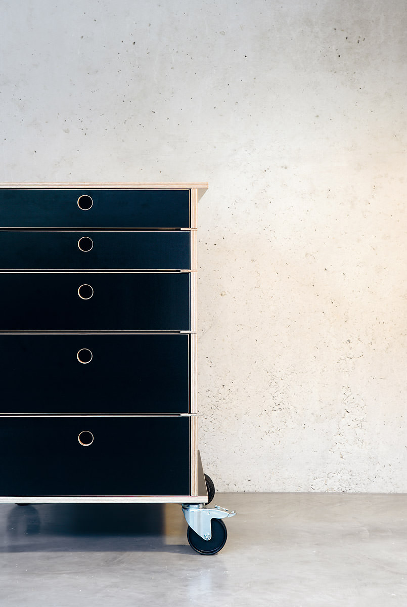 Das Lader Baukastensystem setzt sich aus Schubkästen und Korpuselementen zusammen. Unzählige Möglichkeiten der Anordnung und Farbauswahl machen das Möbel zu einem vielseitigen Ordnungshüter.