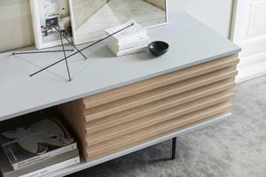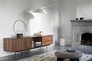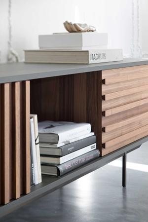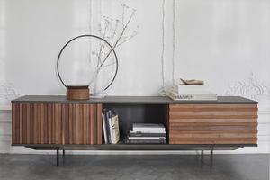 Die Fronten des Sideboards Harri verstecken Schübe oder Stauraum hinter Türen. Die charakteristischen Massivholzleisten machen die Harri Serie so unverwechselbar. Die Harri Sideboards sind in vielen Konfigurationen erhältlich.