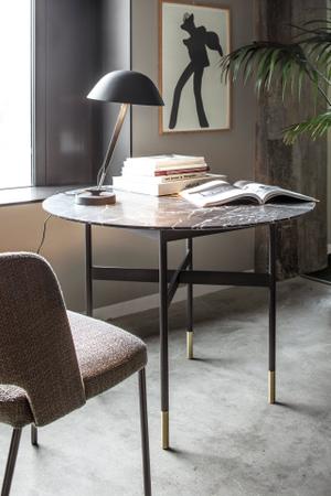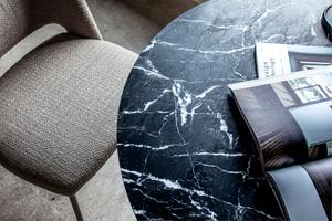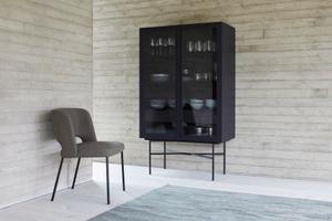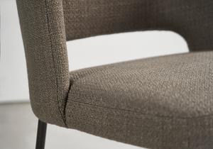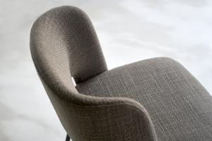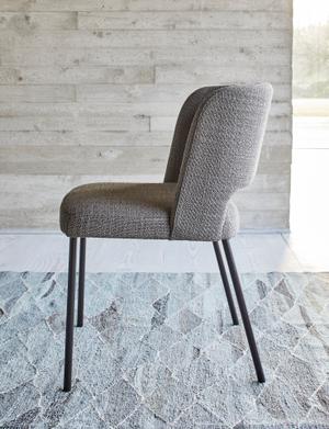 Der Harri Stuhl ist in Stoff oder Leder erhältlich. Die anthrazitfarben Beine passen zu den Tischen der Harri Serie.