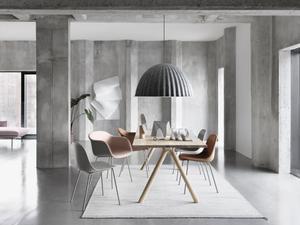Eine einteilige Kunststoffschale liegt auf einem feinem Gestell aus Stahl. Das ist Fiber aus dem Hause Muuto.