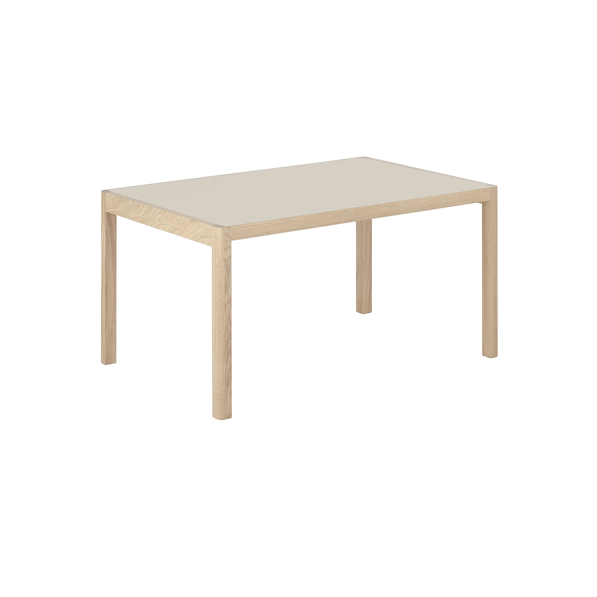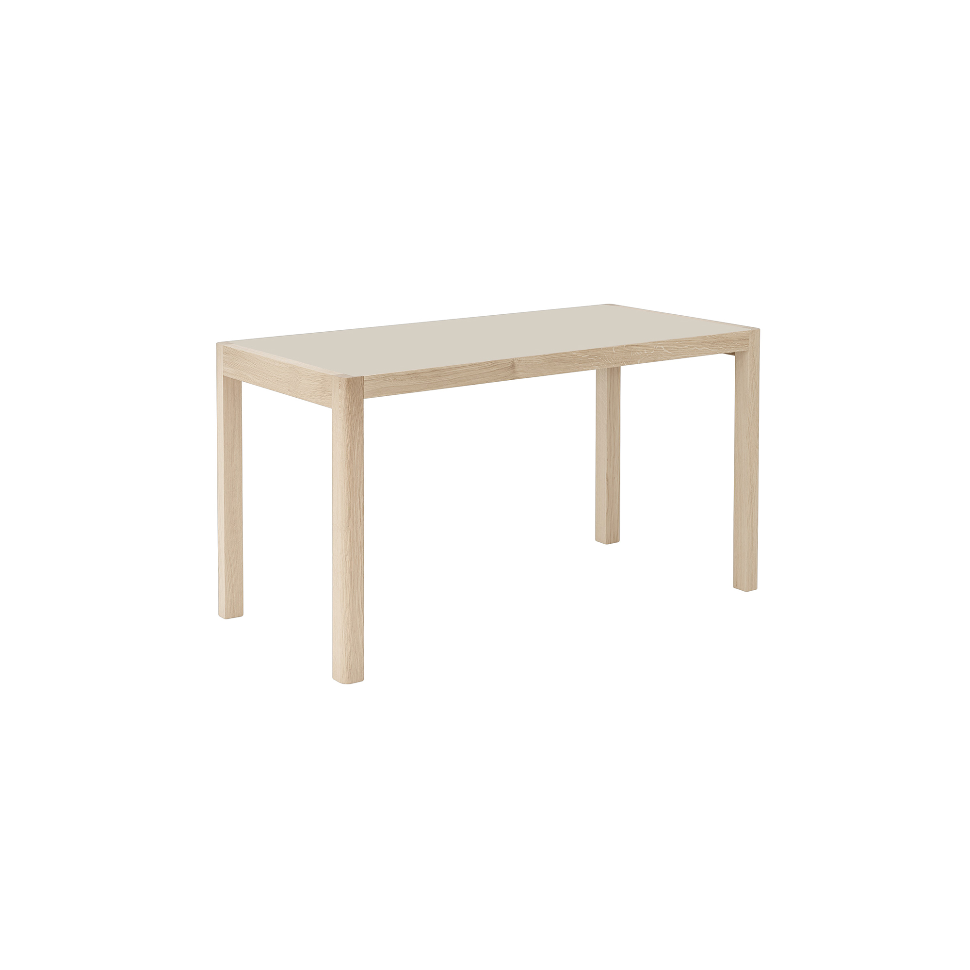 Mit seiner Tischplatte aus Eichenfurnier oder Linoleum, die sich harmonisch in das Gestell aus massiver Eiche einfügt, verleiht der Workshop Table jedem Ambiente ein raffiniertes und zurückhaltendes Aussehen.
