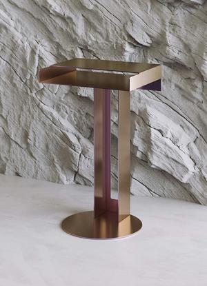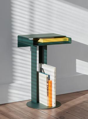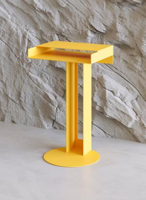 Der Meta Beistelltisch besticht durch sein einzigartiges Design. Er besteht aus einer harmonischen Anordnung pulverbeschichteter rechteckiger und kreisförmiger Elemente, die je nach Blickwinkel eine filigrane oder massive Erscheinung haben.