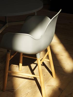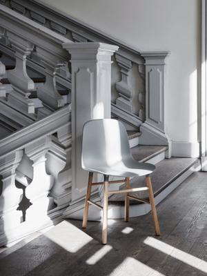 Der umtriebige Simon Legald schuf mit Form eine wunderbar ikonische Möbelserie. Die edle Kombination aus Holz und Hartplastik ist minimalistisch modern und zeitlos gleichermaßen und ist so ein flexibler und praktischer Stuhl für jedes Zimmer, ob als Büro-(dreh-)stuhl, Beistellstuhl, Esszimmer - oder Barstuhl.