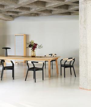 Japan trifft Dänemark. Für Normann Copenhagen entwarf der japanische Designer Tatsuo Kuroda den Knot Stuhl, der an das klassische Design der 50er Jahre erinnert. Die charakteristischen Verbindungsstellen sind aus natürlichem Papiergarn.