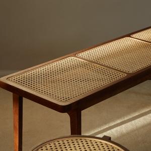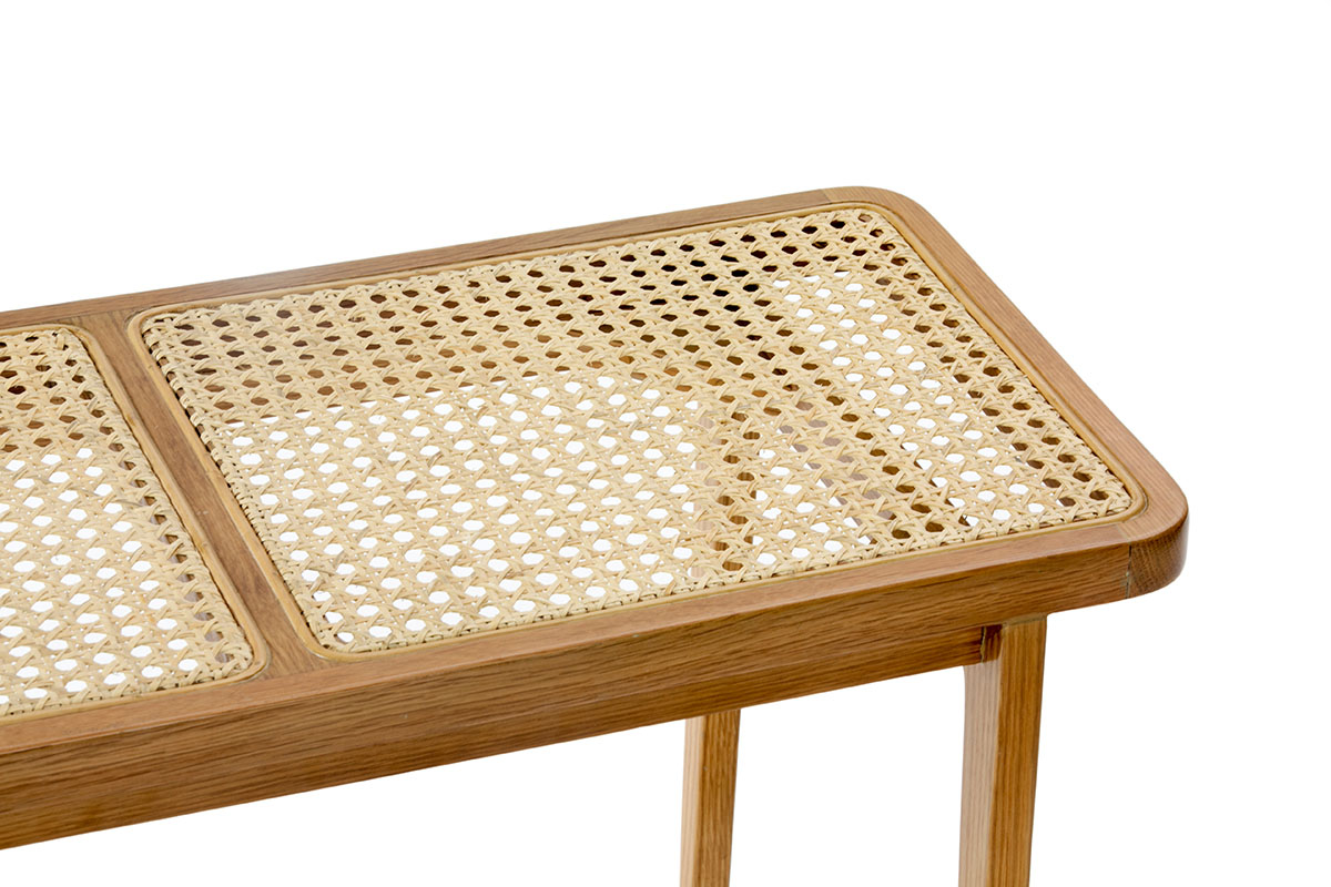 Die Le Roi Bank aus solider Eiche mit Wiener Geflecht hat eine ruhige Ausstrahlungskraft. Das Zusammenspiel der Materialien schlägt die Verbindung vom klassischen Design der Kaffeehausstühle zu den für Skandinavien typisch minimalistischen Entwürfen.