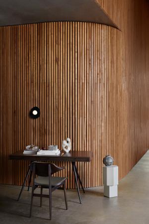 Der Tischplattenkern besteht aus MDF und ist in schwarzem Eschenfurnier erhältlich. Die Tischplatte hat einen kleinen Innenraum für einen Stromverteiler, so dass Smartphones und Laptops problemlos mit Strom versorgt werden können. Das Kabel vom Stromverteiler wird durch ein kleines Loch in einem der Beine gezogen - so gibt es keinen Kabelsalat.