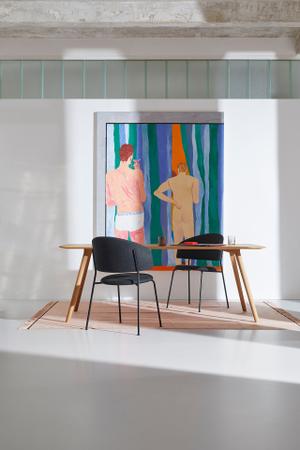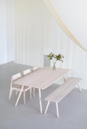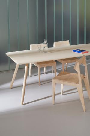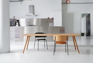 Der Meyer Tisch wird aus massiver Eiche, Esche oder Walnuss gefertigt. Das klassische Design mit leichter Silhouette ist bestens geeignet als Küchentisch, an dem Familie und Freunde zusammen kommen.