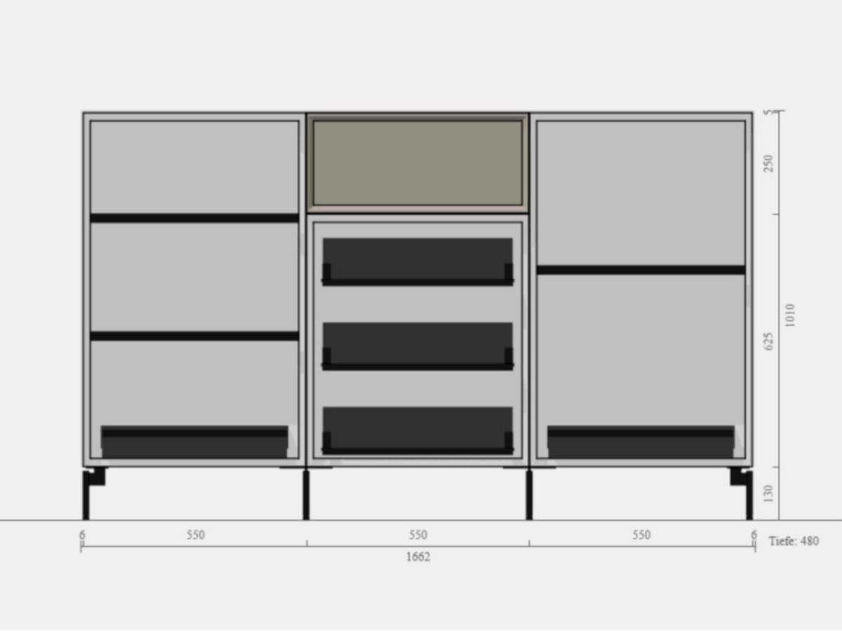 - 1 Tür stehend mit Fachboden und Auszugsboden