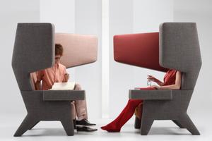 Durch seine speziellen, verlängerten „Ohren“ bietet der EarChair eine Art schützenden Kokon, der Geräusche abschirmt und so eine ruhige, fokussierte Atmosphäre schafft – perfekt für Meetings oder kurze Gespräche. Besonders in Zweier- oder Vierergruppen sorgt er für eine gewisse Intimität und reduziert Ablenkungen im hektischen Arbeitsalltag.