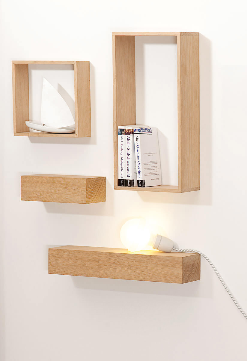 Das Shelf Regal ist ein leichtes und mobiles Regalensemble von Raumgestalt. Gefertigt aus Eiche kann das Regal beliebig variiert aufgestellt werden.