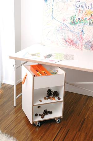 Der Möbelhersteller Richard Lampert hat das Potential des Eiermann Schreibtisches erkannt und eine kindergerechte Version des Designklassikers entwickelt. Austauschbare Verlängerungsstäbe lassen den Tisch auf sechs Ebenen mitwachsen.