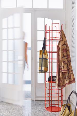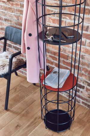 Die Standgarderobe ist dank der Möglichkeit, zusätzlich runde Böden auf den verschiedenen Ebenen einzusetzen, vielseitig nutzbar. Im Bad für Handtücher und Kleinkram, in der Diele als klassische Standgarderobe oder einfach als rundes Regal.