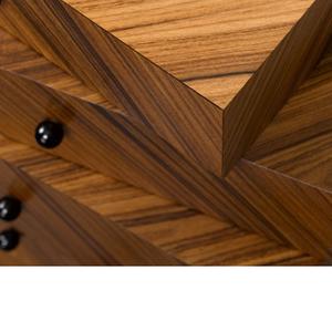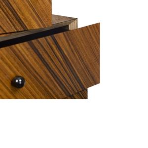 Die Schubladen sind innen schwarz. Außen mit Santos-Palisander oder australischem Red Gum (Eukalyptus) diagonal furniert. Unglaublich schön gefertigt.