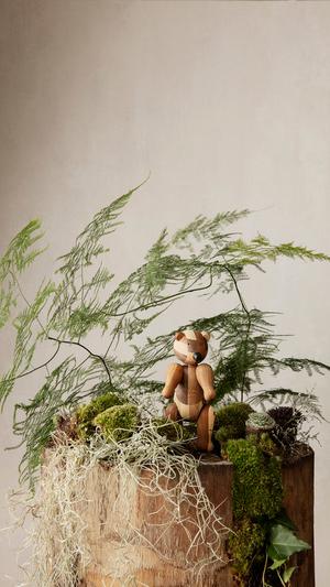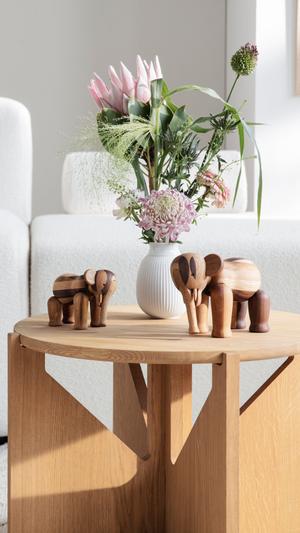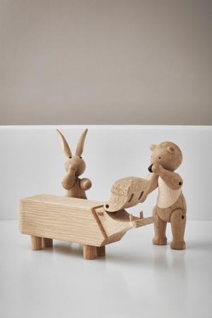 Der dänische Designer Kay Bojesen war verliebt, verliebt in einen Werkstoff – Holz. Ab 1951 produzierte er eine ganze Reihe an Holztieren in seiner eignen Werkstatt. Bis heute erfreuen sich Kinder und Erwachsene an seinen sympathischen Kreaturen, die trotz ihrer minimalistischen Gestaltung etwas Freundliches und Vertrautes ausstrahlen. Der Hund Tim aus Räuchereiche wird noch immer nach Originalentwurf gefertigt und begleitet Groß und Klein über Generationen hinweg.