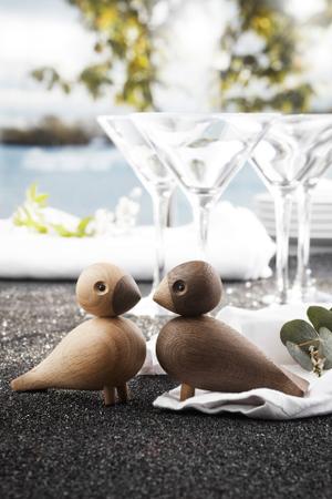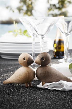 Diese zwei Vögelchen sind einer afrikanischen Papageien-Art nachempfunden, die stets im Doppel auftreten und den Spitznamen „Lovebirds“ tragen. Das Pärchen ist Teil der Tierfamilie aus Holz, die Designer Kay Bojesen zwischen 1935 und 1957 ins Leben rief.