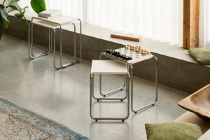 Die Beistelltische B 97 des Thonet-Design Teams sind elegant, flexibel und vielseitig einsetzbar. Dieses Set erinnert anhand seiner Dimensionen an die Satztische B 9 von Marcel Breuer.