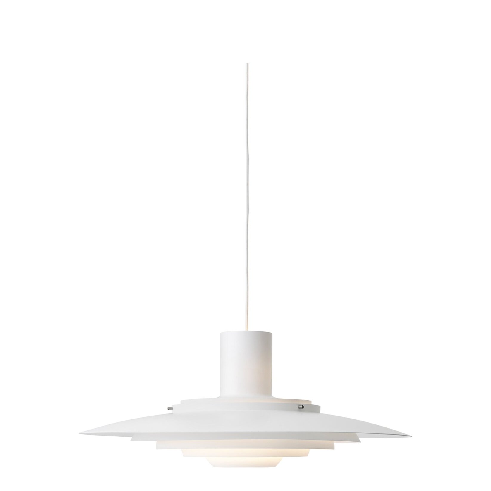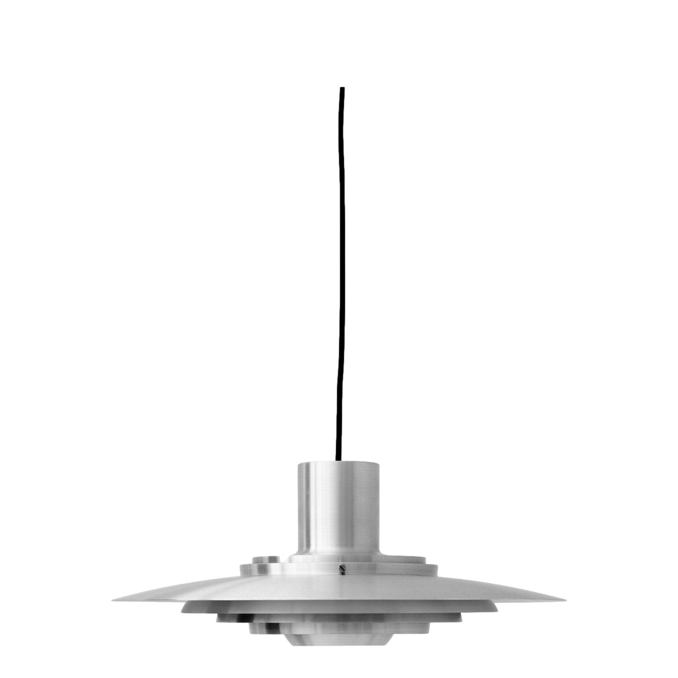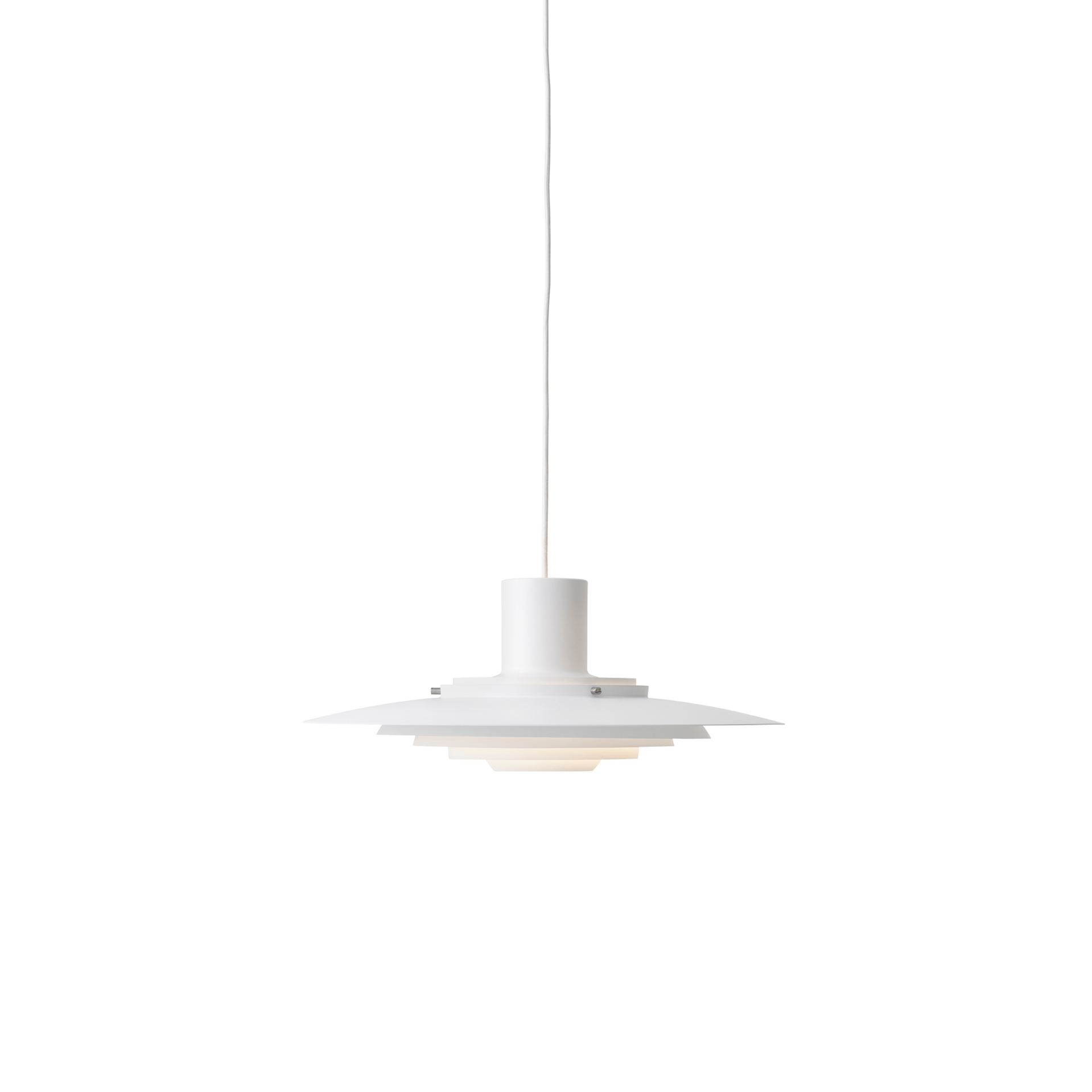 Fünf konzentrische, sanft gekrümmte Scheiben erzeugen ein weiches, diffuses Licht. Die Leuchte ist in zwei Größen, in reinem Aluminium oder matt weiß lackiert erhältlich.
