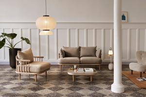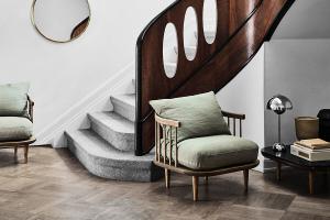 Die Fly Serie von Space Copenhagen hat eine skulpturale Anmutung, ohne auf den Komfort zu verzichten. Das filigrane Sichtholzgestelle in Kombination mit der gemütlichen Polsterungen ist typisch skandinavisch.