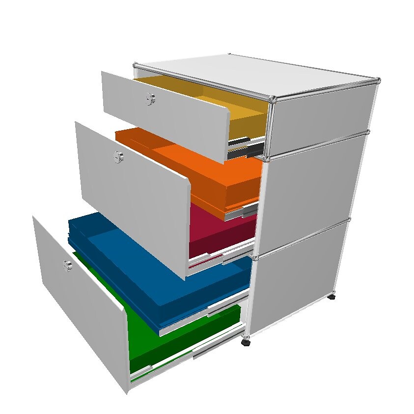 - 5 Ausziehtablare in goldgelb, reinorange, rubinrot, enzianblau und grün