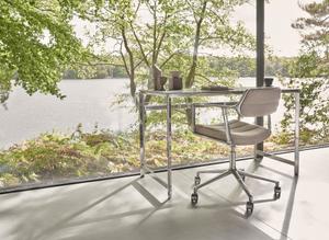 Durch seine kompakten Maße eignet sich der Studio Desk Vipp 430 sowohl für kleine Räume als auch für großzügigere Büros, wo er durch seine schlichte Präsenz beeindruckt. Der Schreibtisch harmoniert perfekt mit dem Vipp 453 Swivel+ Drehstuhl, der durch seine ergonomischen Eigenschaften und das klare Design den funktionalen Anspruch ergänzt.
