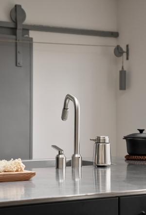Im Vordergrund der Vipp Produkte steht vor allem eine benutzerfreundliche Funktion. Aus diesem Grund ermöglicht die speziell angefertigte Pumpe mit nur einem Pumpenschlag eine Dosierung, die die optimale Menge Seife enthält.