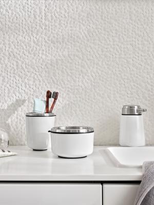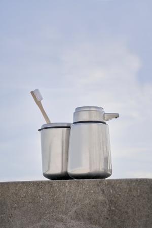 Der Vipp Seifenspender ist mit seiner ähnlichen Formensprache an dem traditionellen Treteimer orientiert. Vipps erste Intention ist die Erfüllung der Funktion, um dann das Design den vorhandenen Vipp Kollektionen äußerlich anzupassen.