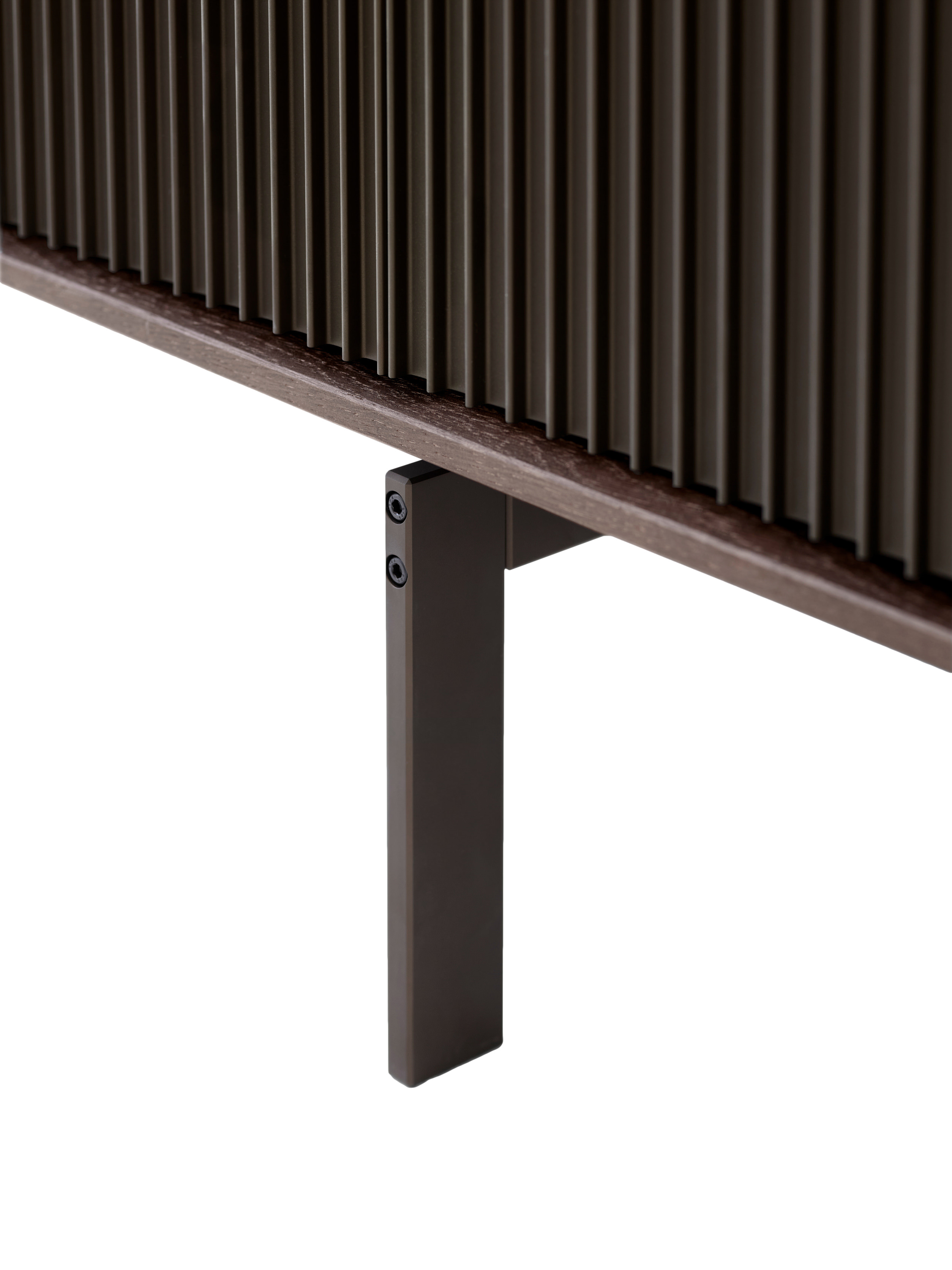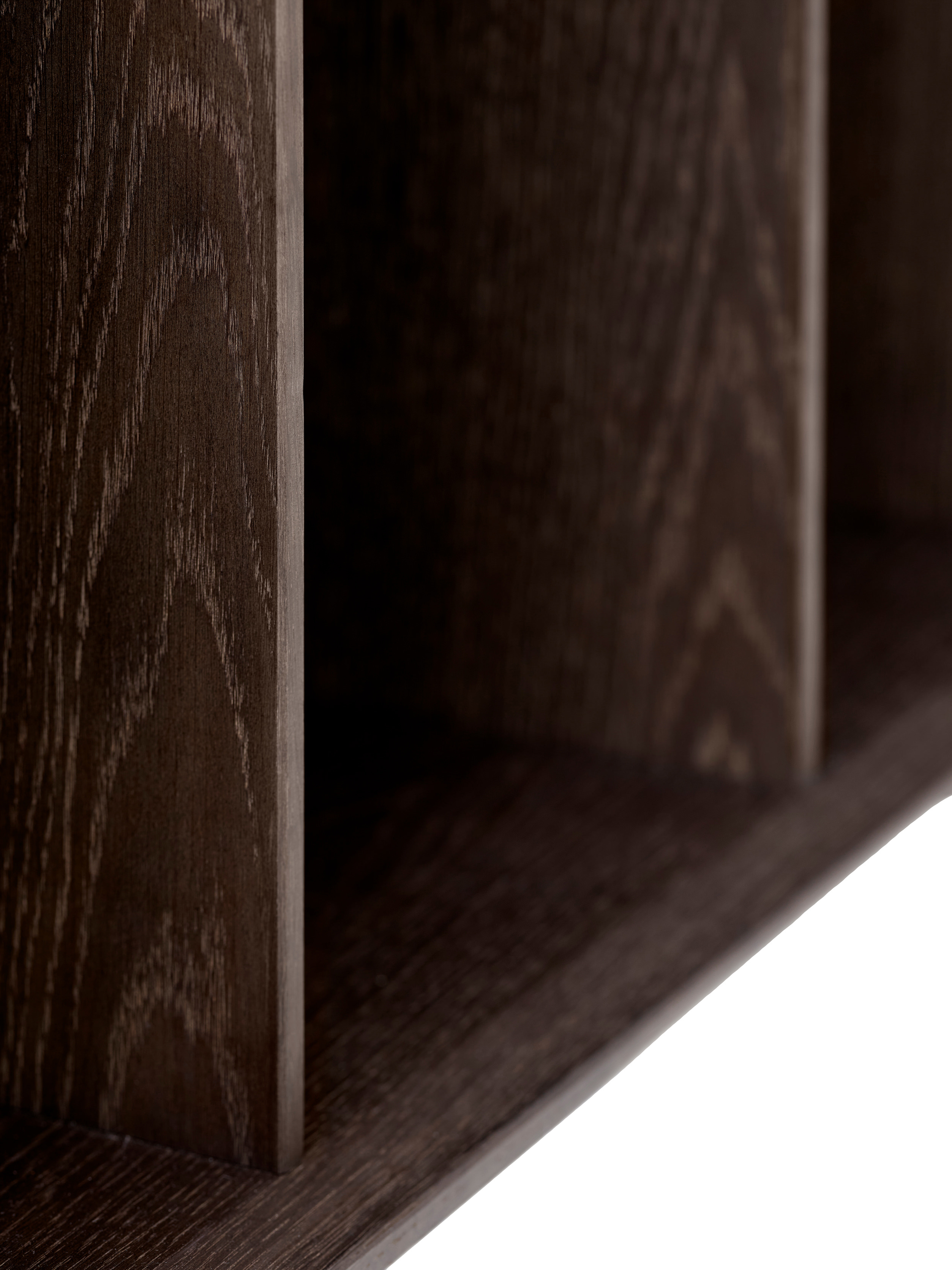 - Eiche furniert, dunkel gebeizt und lackiert