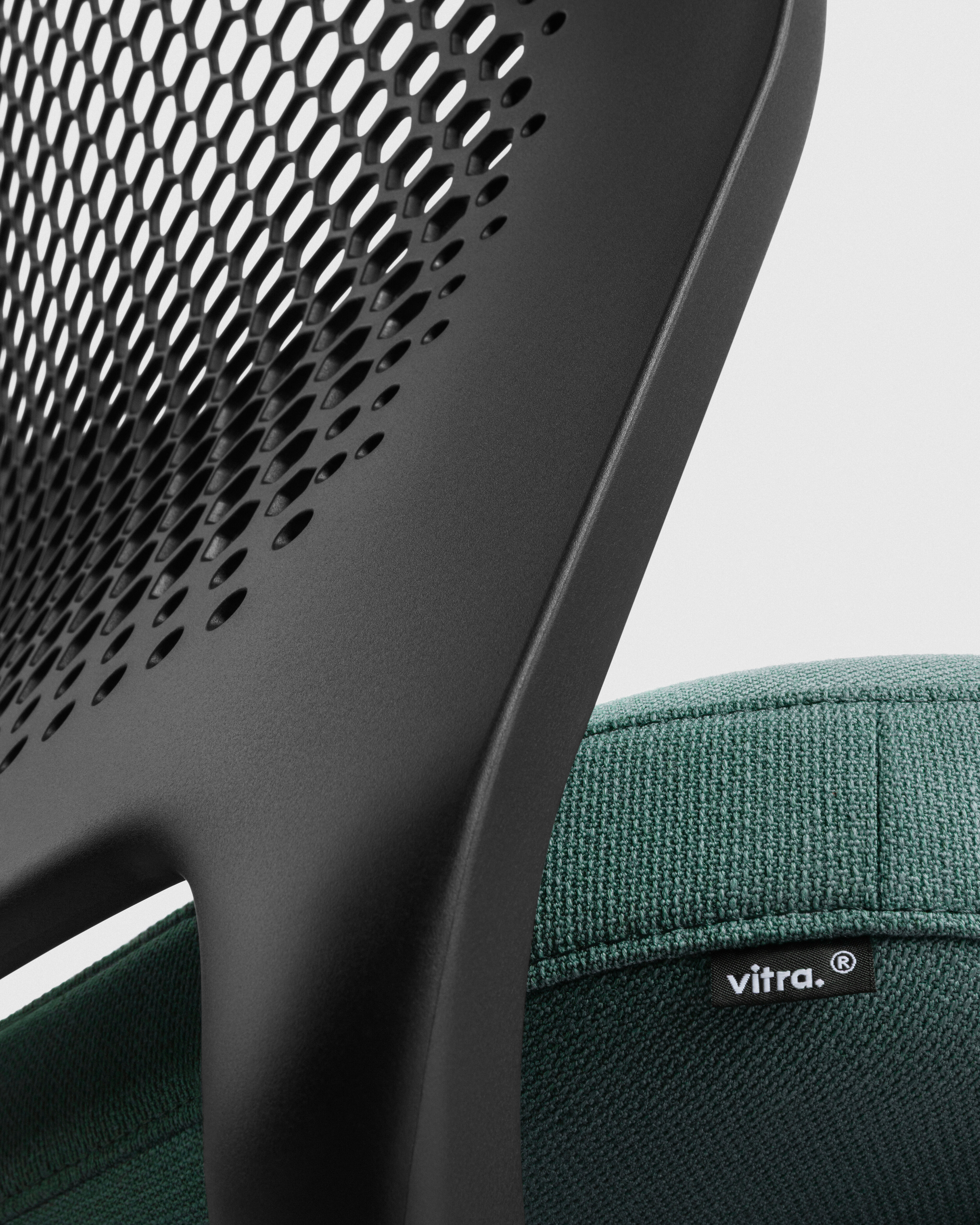 Charakteristisch für den ID Air ist die einteilige Kunststoffrückenlehne mit Lochstruktur. Sie ermöglicht Bewegungsfreiheit, unterstützt gezielt den Rücken und sorgt gleichzeitig für permanente Luftzirkulation. Gerade in längeren Arbeitssituationen entsteht so ein angenehmes Sitzklima. In Kombination mit dem komfortablen Sitzpolster ergibt sich ein ausgewogenes Verhältnis aus Stabilität und Flexibilität.