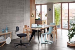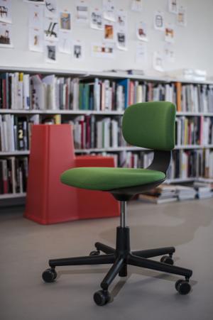 Der Studiostuhl Rookie ist von Konstantin Grcic als unkonventionell simpler Stuhl entworfen worden. Mit wenig Einstellungsmöglichkeiten bietet er ein angenehmes Sitzgefühl.
