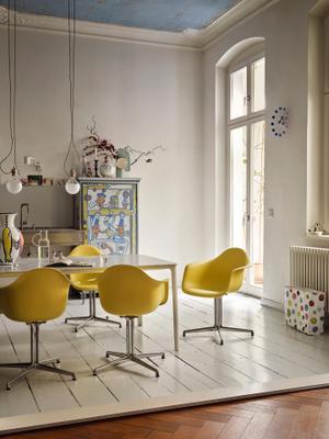 Durch verbesserte Verfahren bei der Produktion dieser besonderen Stühle konnte Vitra die Produktion der Eames Fiberglass Side Chairs wieder aufnehmen. Durch das Fiberglas, das ursprünglich für militärische Zwecke verwendet wurde, erhält das Traditionsmodell einen lebendigen Look, da die Glasfasern auf der Sitzschale zu sehen sind. Durch die organische Form und die besonderen Materialen wird der Fiberglass Chair zu jedermanns Liebling.