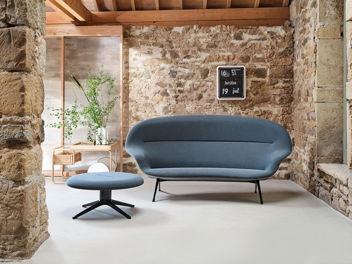 Abalon Platform ist ein runder Hocker passend zum Abalon Sofa. Er kann als Ablage oder Fußhocker dienen. Die stark abgespreizten Beine sorgen für hohe Stabilität.