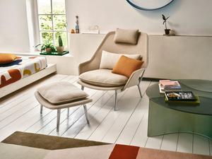 Der Slow Chair wurde 2007 von Ronan und Erwan Bouroullec für Vitra entworfen und steht für einen loungigen Sitzkomfort bei reduzierter Form. Charakteristisch ist die offene, leichte Konstruktion mit einem filigranen Gestell, das Stabilität bietet und gleichzeitig zurückhaltend wirkt.
