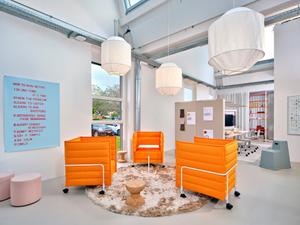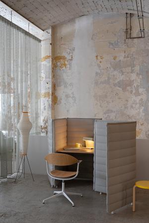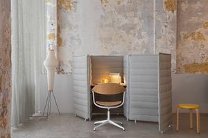 Das „Raum im Raum”-Konzept, das Vitra schon lange und intensiv mit den Designern Ronan und Erwan Bouroullec verfolgt, ist die Idee, mobile mikroarchitektonische Elemente in offenen Flächen zu platzieren, um Rückzugsräume für konzentriertes Arbeiten und Besprechungen zu schaffen.