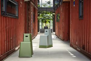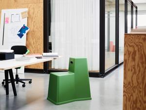 Stool-Tool bietet nicht nur variable Sitzpositionen, sondern kann auch selbst dank eines Tragegriffs ganz leicht umgestellt oder weggeräumt werden. Es sind bis zu 10 Stück ab Boden stapelbar, inklusive Stapelschutz.