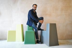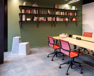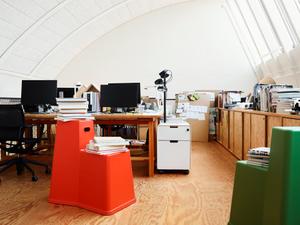 Der Stool-Tool von Konstantin Grcic wirkt im Raum wie eine Skulptur und ist dabei vielseitig nutzbar. So sind verschiedene Sitzpositionen möglich oder auch der Gebrauch als Arbeits- und Ablagefläche.
