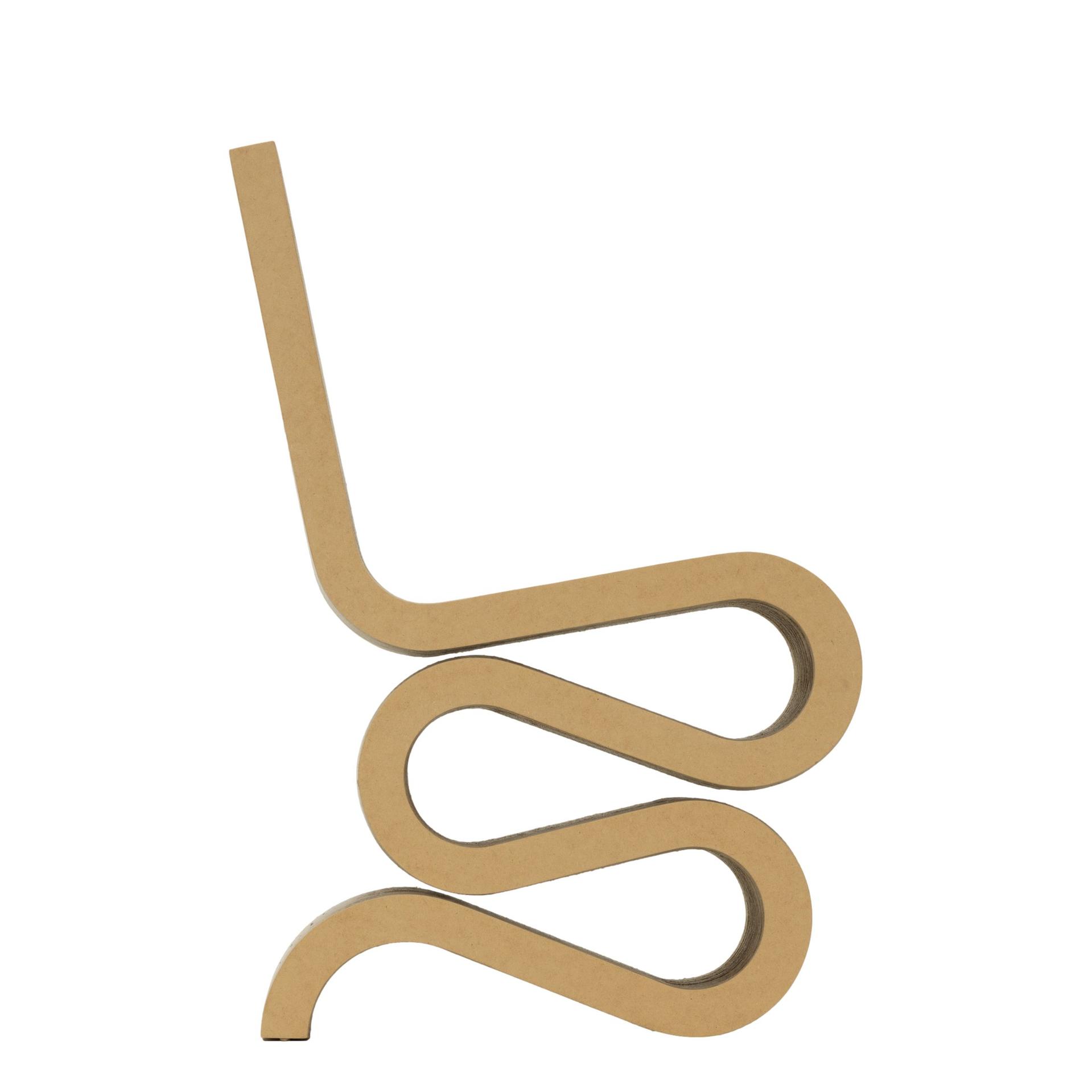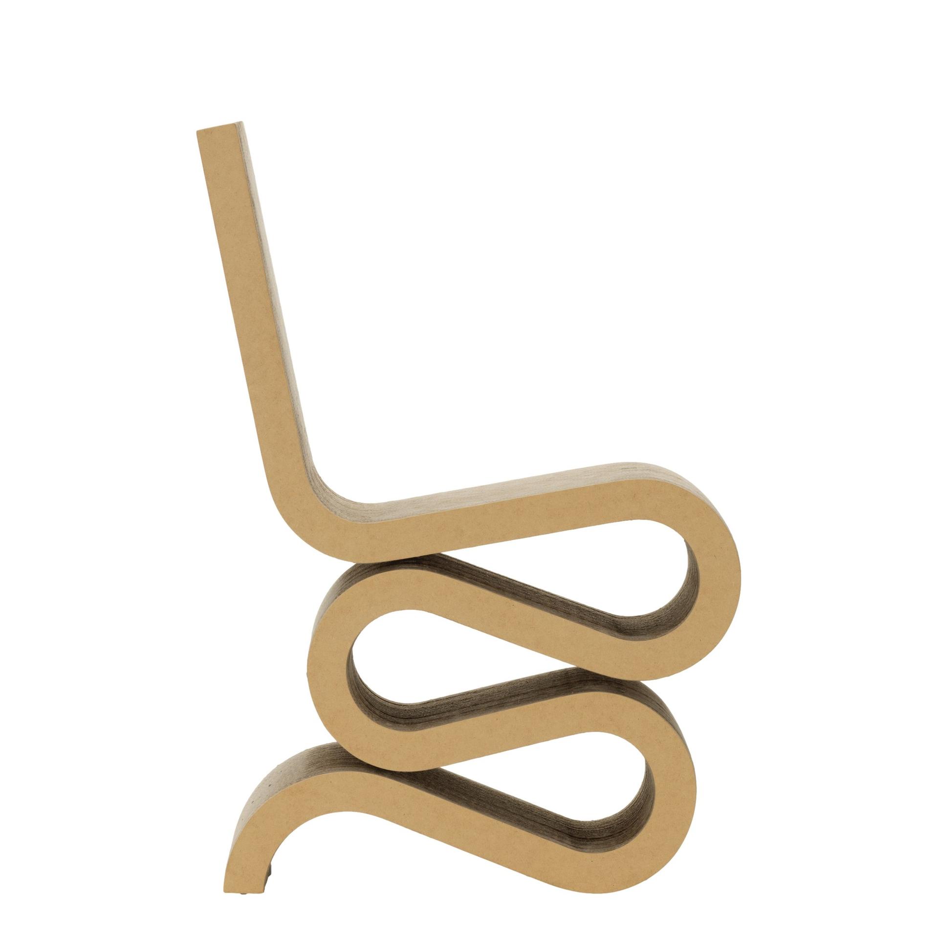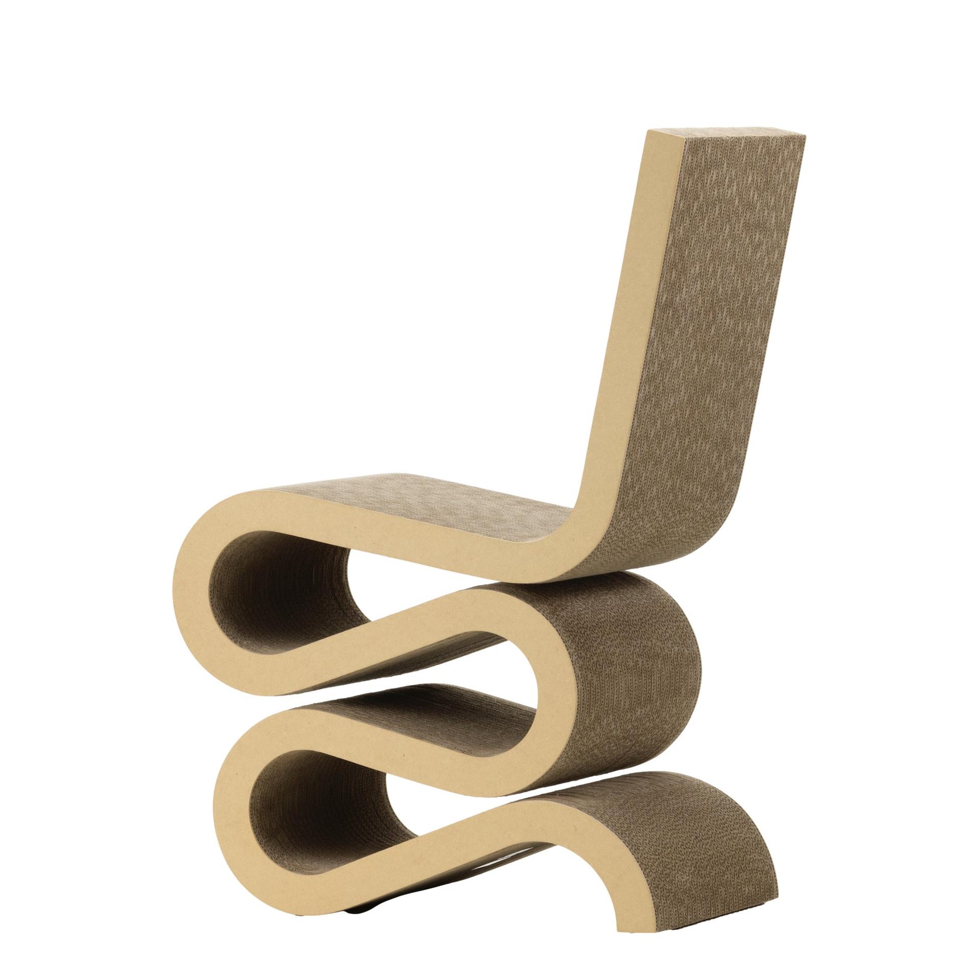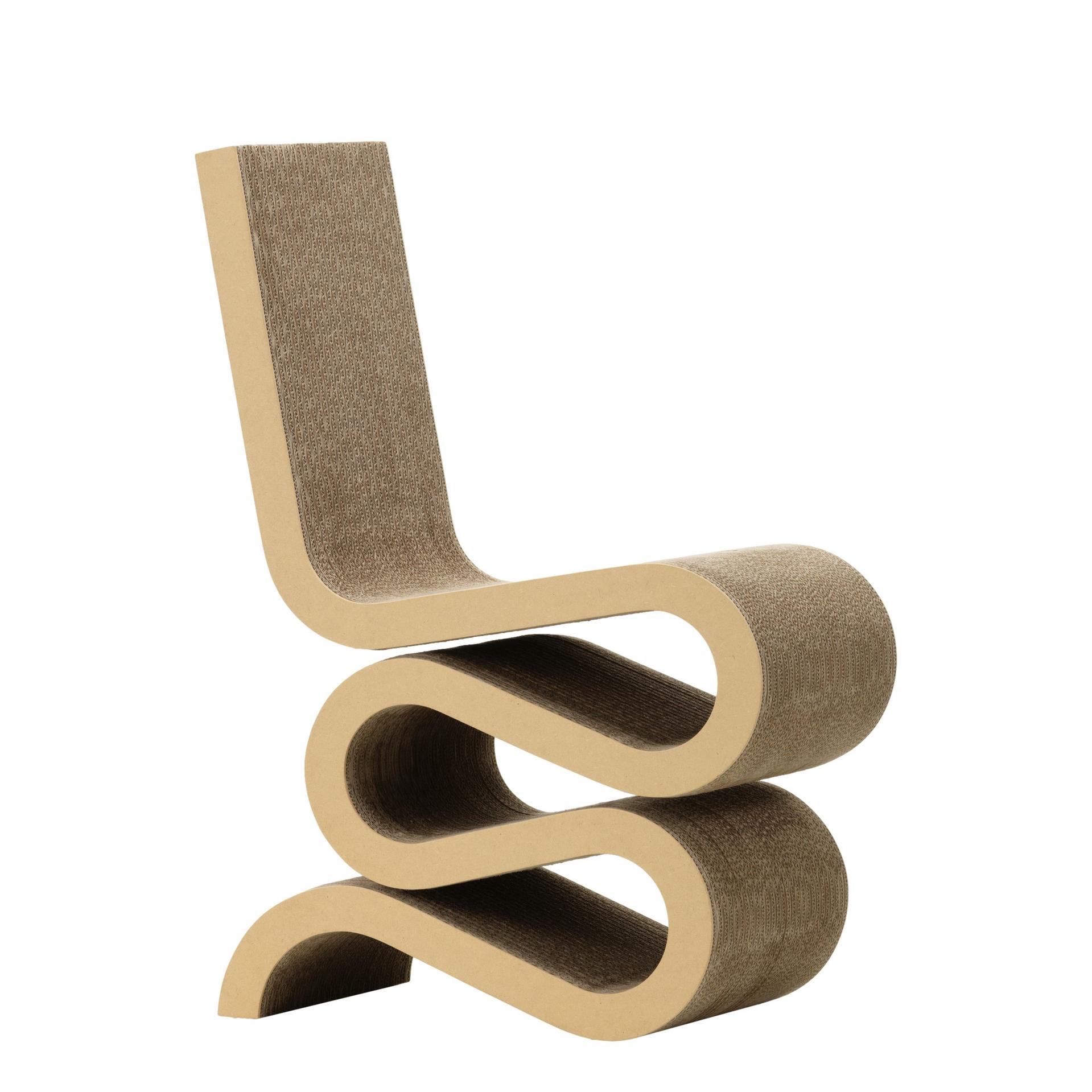 Der Wiggle Side Chair besticht durch seine ungewöhnliche Formgebung, die ihn wie ein Kunstwerk erscheinen lässt. Trotz seiner Einfachheit ist er durchdacht konstruiert und bietet eine überraschende Robustheit und Stabilität. Gehry, der 1929 in Toronto geboren wurde, erlangte weltweite Anerkennung für seine architektonischen Meisterwerke und seine Vorliebe für unkonventionelle Materialien. Die Easy Edges-Kollektion, die er zwischen 1969 und 1972 entwarf, zeigt seine besondere Fähigkeit, selbst Karton in Designklassiker zu verwandeln.