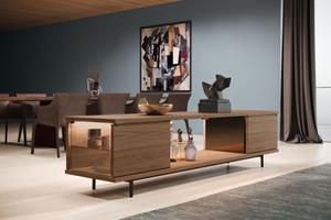 The Farns Sideboards können genauso Lichtkörper wie Raumteiler sein. Die Türen lassen sich um 180° öffnen.