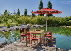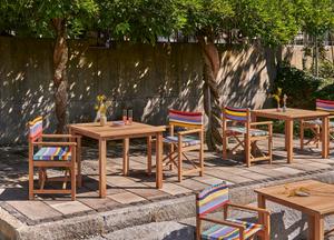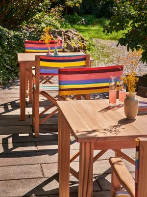 Sommer, Sonne, Cabin. Dem klassischen Regiestuhl nachempfunden, wirkt der Cabin Chair aus massivem Teakholz edel und wird mit bunter Bespannung zur stilvollen Sitzgelegenheit.