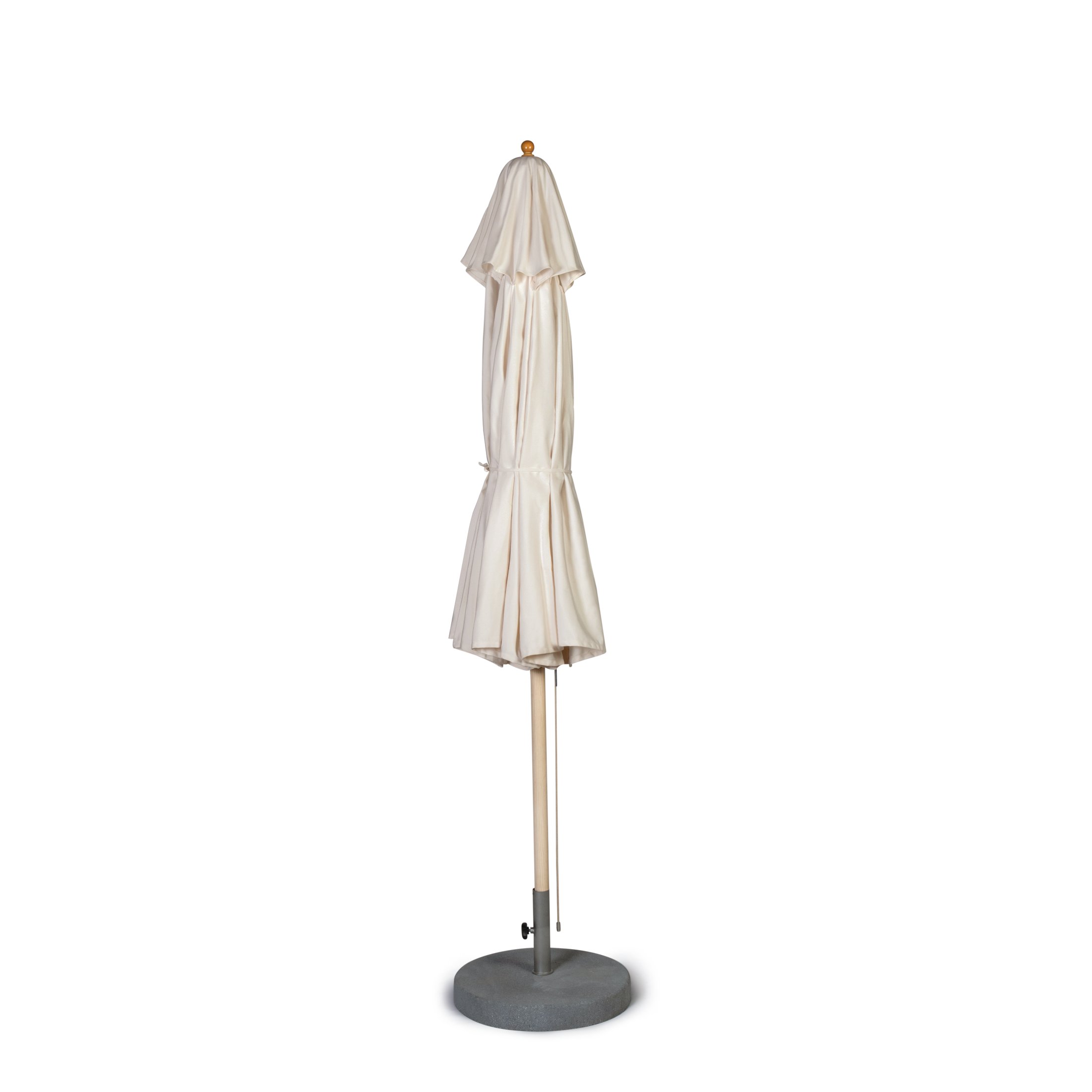Der Weishäupl Sonnenschirme Basic zeichnet sich durch erstklassiges Material und sorgfältige Verarbeitung aus. Hergestellt aus massiver Esche, passen sie sich jeder Umgebung harmonisch an. Die Kombination dieser Materialien gewährleistet Stabilität und Witterungsbeständigkeit. Der Schirm wird mit einer Lufthaube und einem Flaschenzug geliefert und kann optional mit Volants ausgestattet werden.