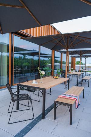 Durch eine qualitativ hochwertige Verarbeitung und elegante Formgebung gehört der Sonnenschirm Teak zu den Bestsellern von Weishäupl.