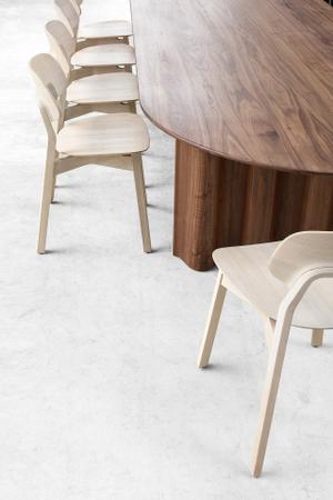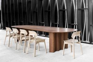 Der Curtain Tisch von Zeitraum, entworfen von Läufer & Keichel, ist ein skulpturaler Massivholztisch, bei dem die wogende „Vorhang“-Struktur aus Holz die schwere Tischplatte scheinbar mühelos trägt. Die harmonische Verbindung aus organischer Bewegung und klarer Form verleiht ihm Leichtigkeit und eine ruhige Präsenz – ein Designstück, das zugleich funktional und künstlerisch wirkt.